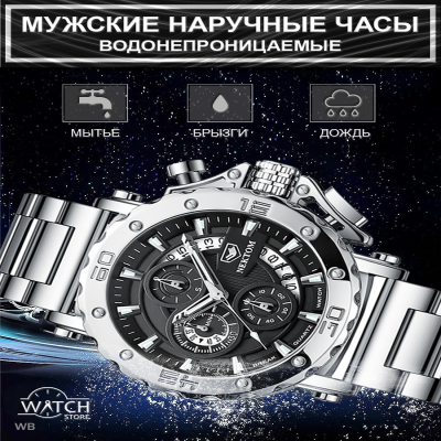 Новинка в мире часов от компании NEKTOM и WATCH-STORE. Наша большая команда является официальным представителем бренда NEKTOM в России.! Часы Мужские Наручные Nektom Quartz Silver/Black Pro это не просто наручные часы, но и идеальный Подарок Вашему Мужчине! Это память, которая всегда будет с ним. Эти модели часов для любителей по-настоящему крупных и массивных экземпляров. Цельнолитой! Браслет и Корпус Мужских Часов изготовлены из Нержавеющей Стали 316L. Сплав железа и хрома в составе стали 316L образует на поверхности защитный слой, обладающий высокими антикоррозийными показателями и особой устойчивостью к механическим повреждениям. Диаметр корпуса составляет 53 мм (шестиугольный циферблат) и 55 мм (круглый циферблат). Сердце часов - Японский Высококачественный Механизм. Всегда помни о времени, и о том, что оно быстротечно. Цени каждое мгновение, проведенное со своими любимыми и близкими людьми. Набирая скорость, не забывай про здесь и сейчас. Ведь синдром отложенной жизни затягивает и трудно отпускает. Пусть часы всегда напоминают тебе о том, что время не остановить ни на секунду. Наша коллекция часов для тех, кто не победил время, а смог подружиться с ним! Присоединяйся. Ведь мы, как талисман, приносим удачу и победу. Часы NEKTOM - это результат четко организованного производственного процесса, высококачественных материалов и швейцарских технологий. Эти мужские кварцевые наручные часы будут безусловно дополнять твой образ, доводя его до совершенства. Часы металлические наручные из стали - массивны, но при этом красивы, поступают к покупателю в подарочной коробке, с ключом для регулировки размера браслета, запасной батарейкой, тряпочкой для полировки . Отличный выбор для подарка любому мужчине, отцу, брату, коллеге, начальнику и просто другу. ГАРАНТИЯ 1 ГОД. Подчёркнуто Брутальный и Стильный Дизайн. Циферблат Черного и Серебряного Цвета с люминесцентными стрелками. Антибликовое закаленное Минеральное Стекло, устойчивое к механическим повреждениям и царапинам. Крупная апертура календаря в оригинальном дизайне по всей правой стороне циферблата. Три дополнительных функциональных Хронографа. Раскладная браслетная застежка "Бабочка". Водостойкость WR 30 (душ, дождь, брызги). Регулируемая длина Ремешка 22 см. Часы крупные! Вес 196 грамм. Обратная связь: info собака watchstorecom точка ru Обратная связь: info собака watchstorecom точка ru Наша компания имеет более чем десятилетний опыт непрерывной жизни и работы в Китае. Мы занимаемся логистикой, сертификацией и официальным таможенным оформлением товаров. Имеем собственные склады и русскоязычных сотрудников в китайских городах Иу и Гуанчжоу - центрах мирового производства. А также оказываем профессиональные и качественные услуги Фулфилмента (подготовки и сдачи товара на маркетплейсы) в Москве. Все этапы работы мы выполняем сами и полностью контролируем весь процесс. От закупки и проверки товаров в Китае, до упаковки и поставки их на склады маркетплейсов. Всё это позволяет в совокупности предложить наиболее лояльные цены и качественные товары для наших клиентов и покупателей. Но при этом, мы уважаем интересы наших коллег по площадке, и в этом претендуем на взаимность. WATCH-STORE - это лишь одно из направлений нашей работы. Но. Если наручные часы, то WATCH-STORE! Тэги: часы наручные мужские 14 февраля мужчине смарт подарок 23 папе подарки для муж